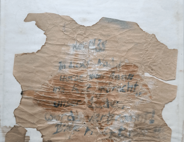 Die zerbrochene Flasche samt Brief wurden dann 20 Jahre lang von derselben Nachbarin aus Engerhafe sorgsam eingerahmt und verwahrt, bis der Brief die Gedenkstätte Engerhafe im Herbst 2025 erreichte. Unsere Hoffnung war es, den Inhalt des Briefes überprüfen zu können und mögliche Familienangehörige der Autorin des Briefes zu finden.