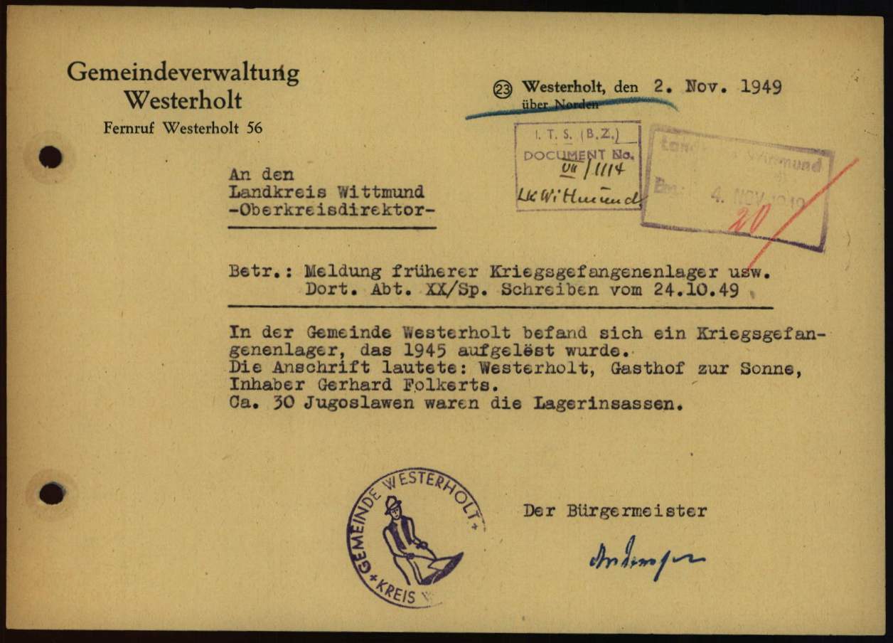 Ab 1940 wurden in dem Ort 20 bis 25 Kriegsgefangene aus dem Stammlager (Stalag XC Nienburg) interniert. Der Raum, in dem die Kriegsgefangenen Franzosen und Serben schliefen, war gut ausgebaut und befand sich im Hinterhaus der Gastwirtschaft „Zur Sonne“ von Gerhard Folkerts. Dort waren etwa je zur Hälfte Franzosen und Serben. Die französischen Gefangenen wurden später verlegt.( 1 ) Im Januar 1944 befanden sich noch 17 serbische Gefangene im Kommando.